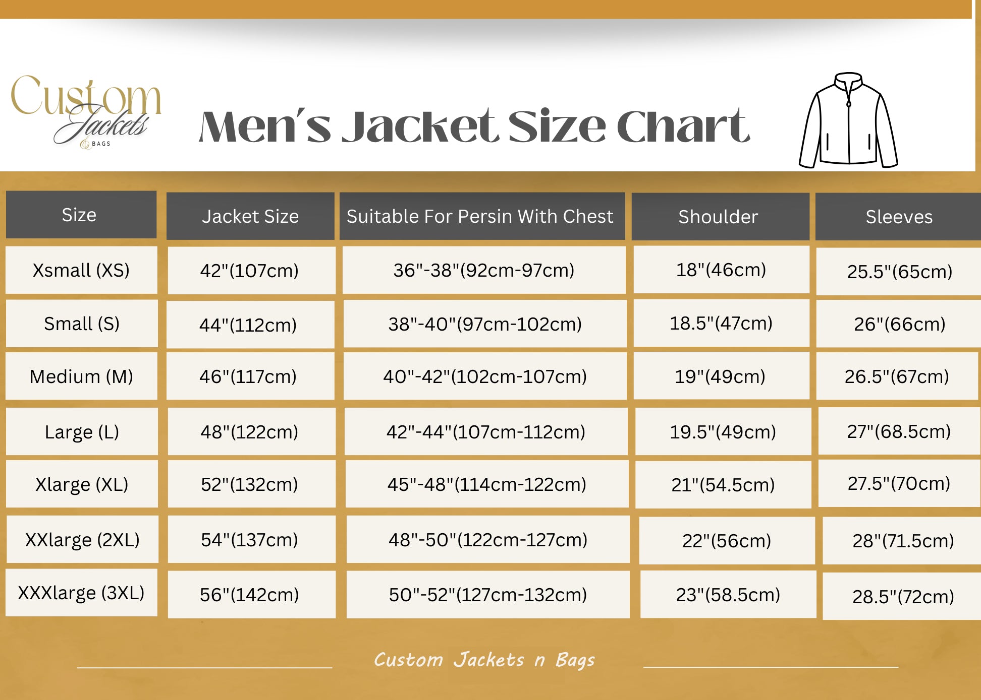 All the sizes available in the jacket check size chart to select the best fit for you.